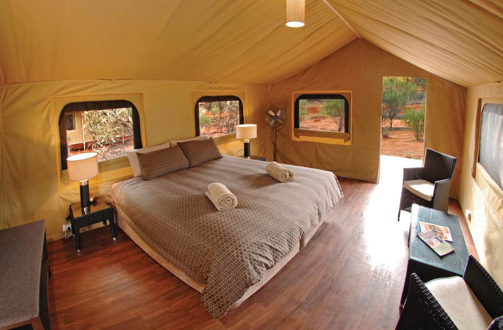 Situé à Kings Creek, dans une ferme d’élevage de bétail et de chameaux, le Kings Canyon Wilderness Lodge propose des hébergements dans un coin discret de la ferme, donnant sur la montagne et le bush. Il vous offre une expérience mémorable dans l’Outback australien.Vous aurez l’occasion de savourer un dîner gastronomique agrémenté d’une touche australienne, composé de trois plats avec du pain fait maison, de la viande de kangourou et du Barramundi. Les petits déjeuners et les dîners sont inclus.Vous logerez dans des tentes-bungalow de luxe équipées d’une salle de bain privative et de la climatisation.