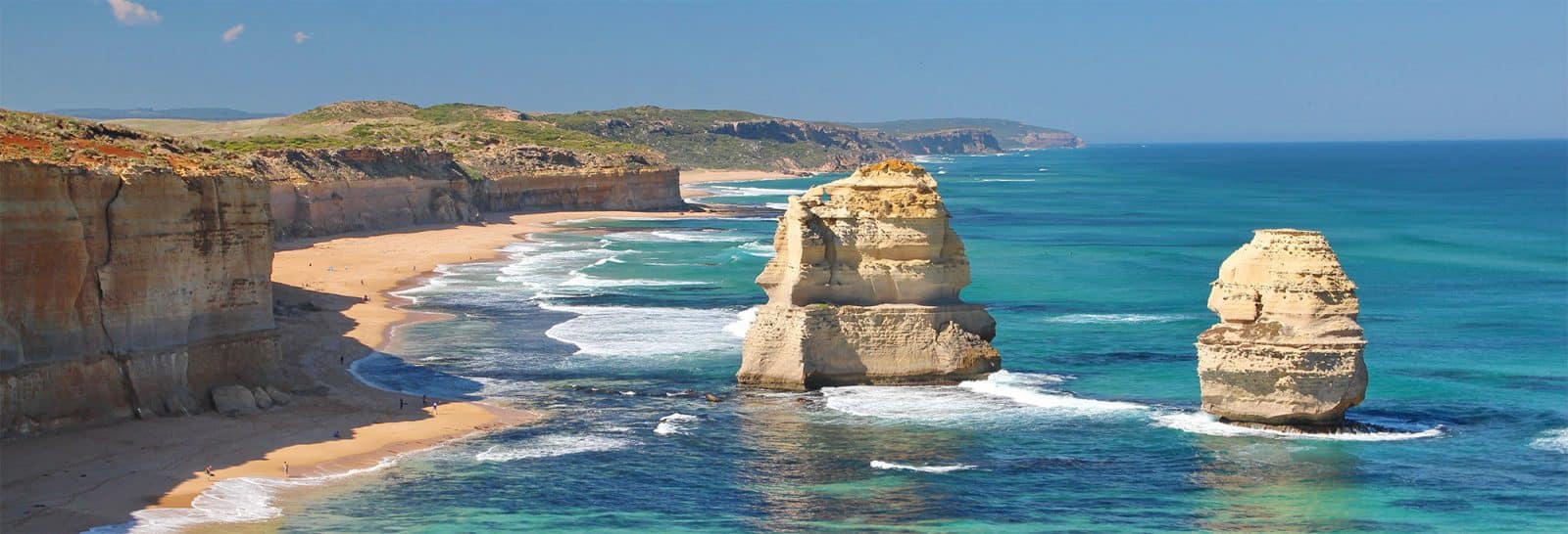 - Les 12 Apôtres. Rochers détachés des falaises par l’érosion. Aujourd’hui, seuls sept apôtres sont encore visibles depuis les plateformes d’observation.
